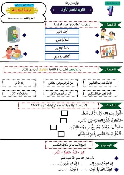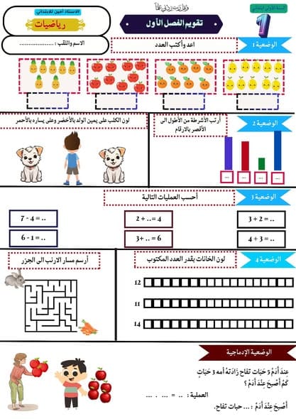اختبارات الفصل الأول السنة الأولى ابتدائيPost author:oussamaPost published:2025-12-07Post category:تعليم اختبارات في اللغة العربية، الرياضيات والتربية الإسلامية للفصل الأول السنة الأولى ابتدائي. من إعداد الأستاذ أمين للابتدائي بارك الله فيه وجزاه خيرا. You Might Also Like تمارين متنوعة في مادة الرياضيات الفصل الأول السنة الثالثة ابتدائي2025-12-08 مخطّط شهر جانفي السنة الثالثة ابتدائي2026-01-04 واجب منزلي رقم 05 رياضيات السنة الثانية ابتدائي2025-11-26