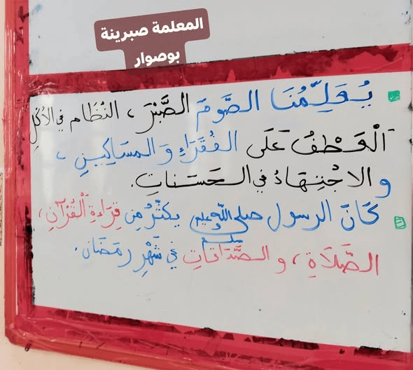 درس الصيام مادة التربية الإسلامية السنة الرابعة ابتدائيPost author:oussamaPost published:2026-01-28Post category:تعليم درس الصيام مادة التربية الإسلامية السنة الرابعة ابتدائي. من إعداد المعلمة صبرينة بوصوار بارك الله فيها وجزاها خيرا. You Might Also Like مراجعة شاملة في مادة الرياضيات السنة الرابعة متوسط2025-12-09 تقويم الفصل الأول في مادة اللغة العربية السنة الثالثة ابتدائي2025-12-07 درس مظاهر إنتاش البذرة التربية العلمية السنة الرابعة ابتدائي2025-12-16